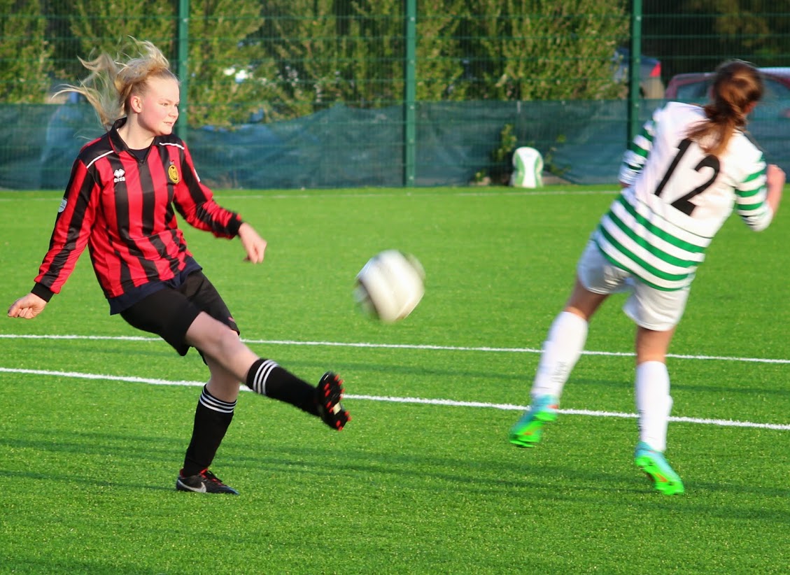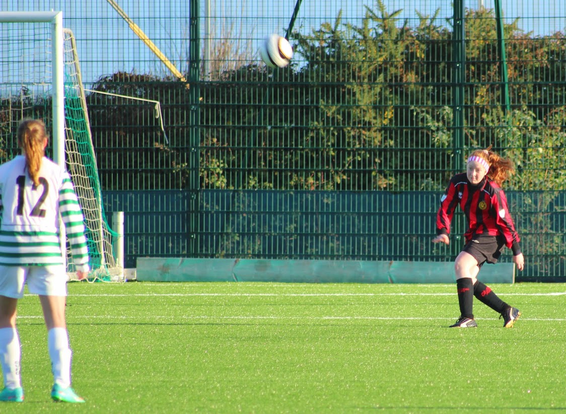 Malahide pressed for the equalizer and pushed on leaving themselves open to the counterattack. The Malahide defensive line had an outstanding day with both defending duties and also their distribution of the ball from the back. Flynn worked tirelessly down the left hand side of midfield and had several shots saved and crosses cut out. O’Keefe on the right side made some great runs and swung in some fine crosses too. Browne dropped back into midfield to help Edwards and Ridge-Sanchez and this move paid off when all the Utd pressure led to a pass to Erika who let fly with a marvellous volley from all of 25 yards which flew over the home keeper and into the roof of the net. 1-1 and deservedly so.